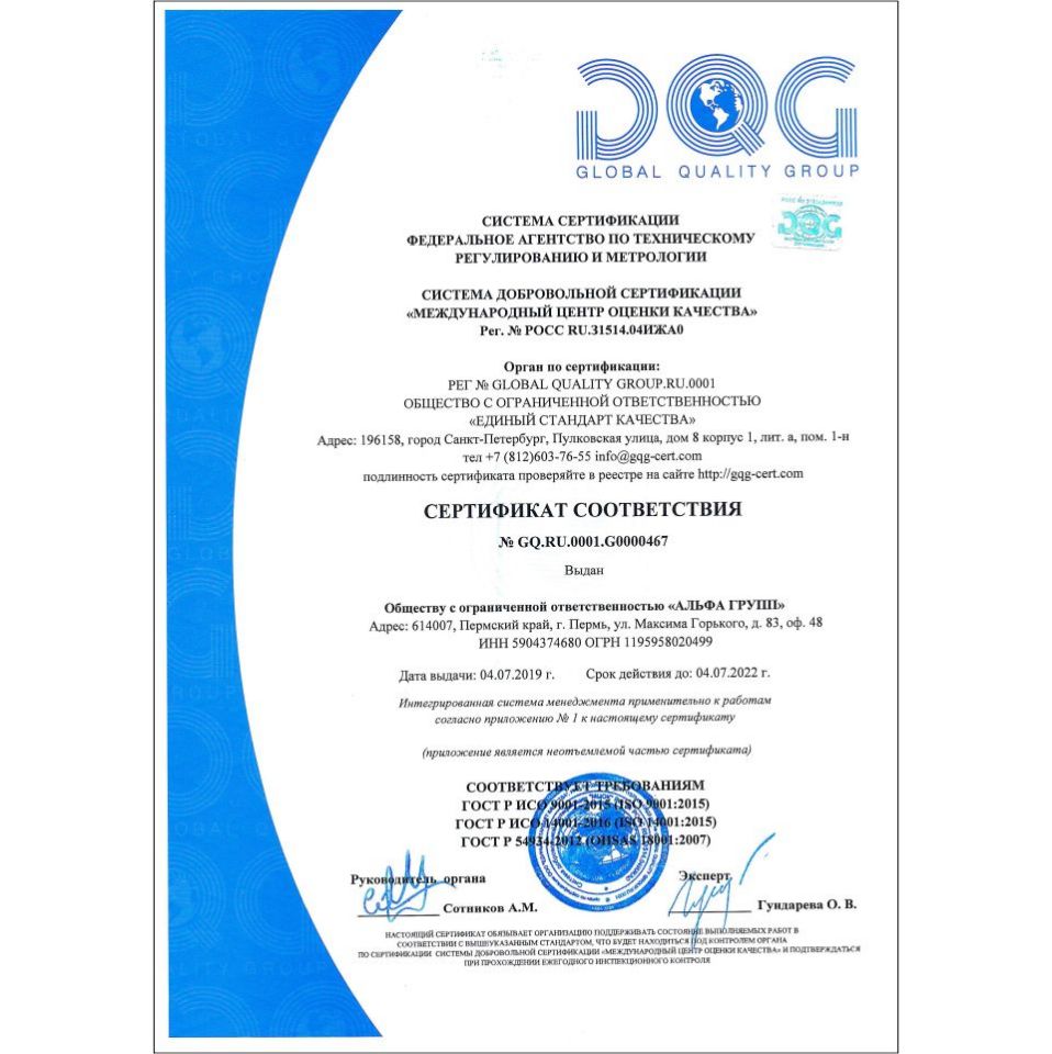 Сертификат соответствия ISO 9001 - 2015